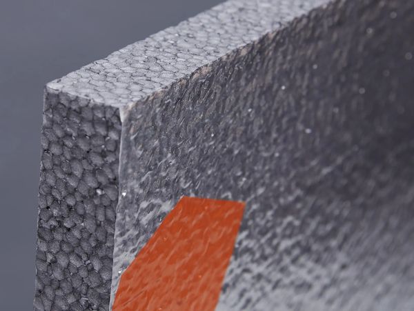 Graphite polystyrene (GPS) rigid board insulation with double-sided reflective film that improves thermal comfort and energy efficiency.